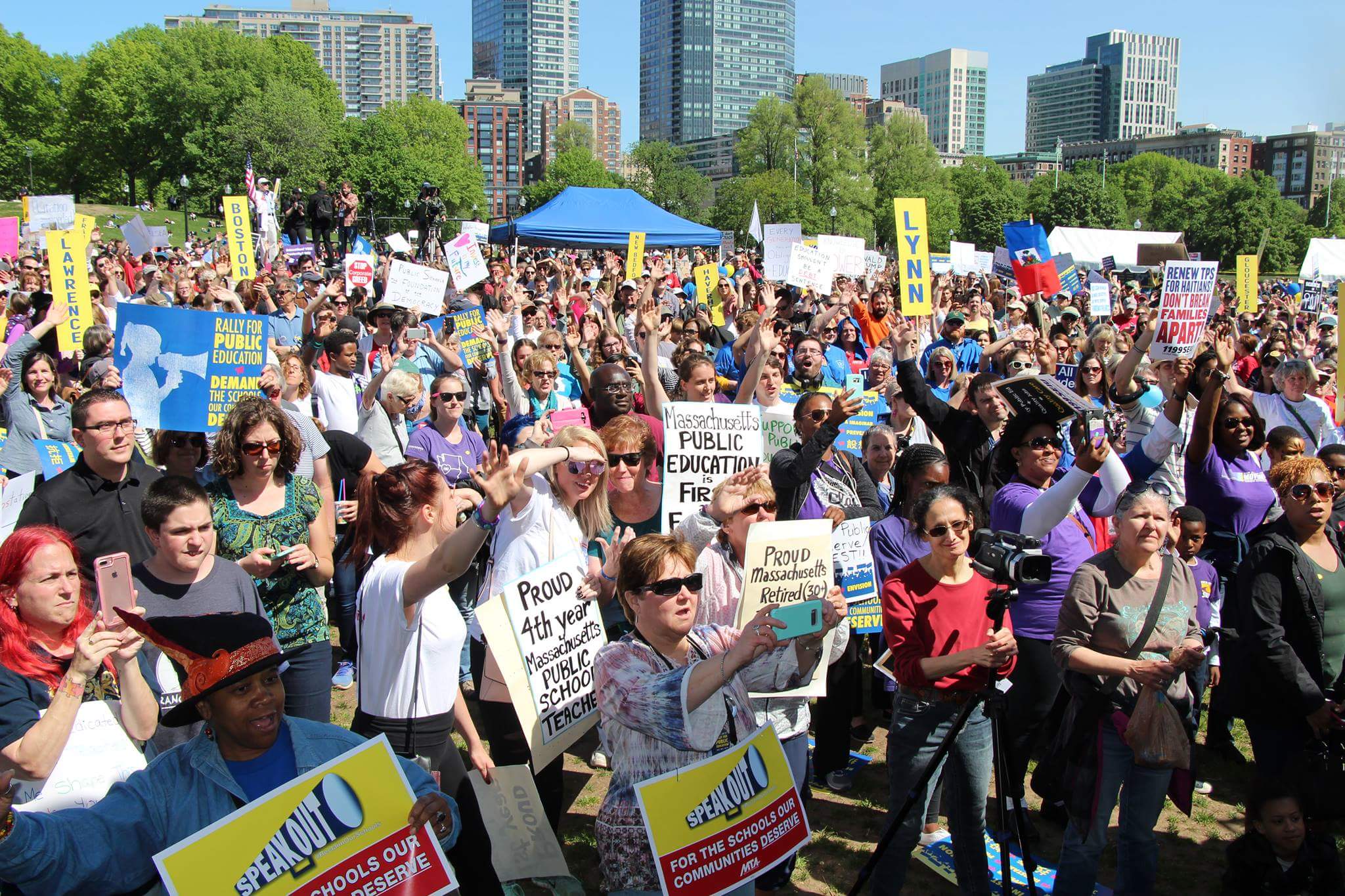 Roughly 4,000 Massachusetts parents, educators and students rallied at Boston Common in a call to defend public education, chanting, “Whose schools? Our schools” and “When we fight! We win!” Participants demanded full funding for public education, pre-K through college, debt-free public higher education, less testing and more learning, and equitable access to quality education for all students.